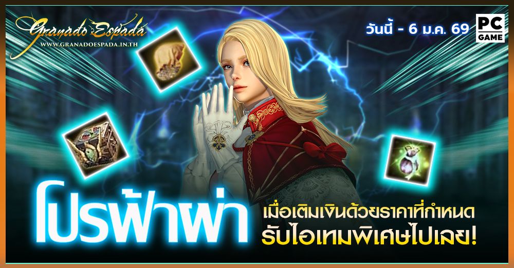 Granado Espada : โปรฟ้าผ่า⚡️ เติมเงินด้วยบัตรราคาที่กำหนดรับไอเทมฟรี 17 - 19 พ.ย. 66