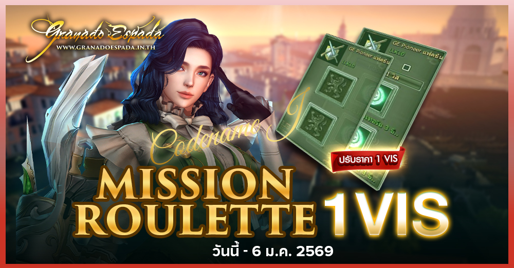 ตอนนี้การกลับมาของกิจกรรมพิเศษที่หลายท่านรอคอย Mission Roulette ลดแรงเหลือเพียง 1 Vis เท่านั้น! กลับมาแล้วว ฟาร์มมันส์ตลอดช่วงระยะเวลากิจกรรมได้แล้ว วันนี้