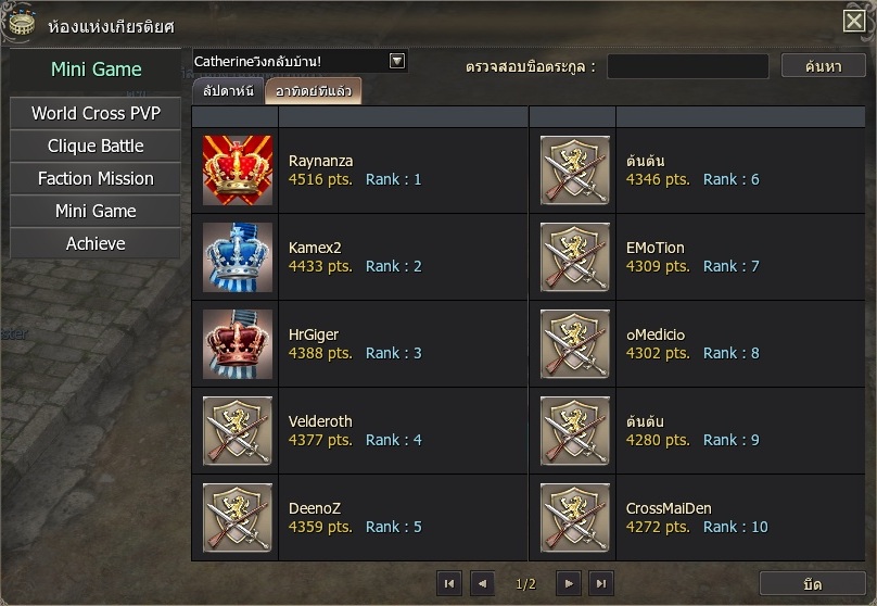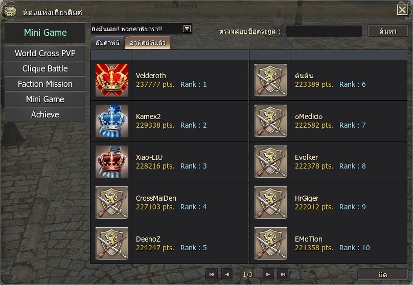 - ท่านสามารถตรวจสอบคะแนนที่ทำได้โดยไปที่ เมนู “ห้องแห่งเกียรติยศ” > “Mini Game”