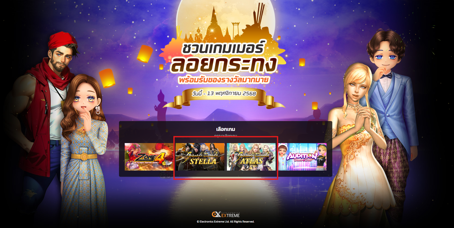 - เข้าร่วมกิจกรรมลอยกระทง คลิกที่นี่ จากนั้นเลือกเกม Granado Espada Extreme