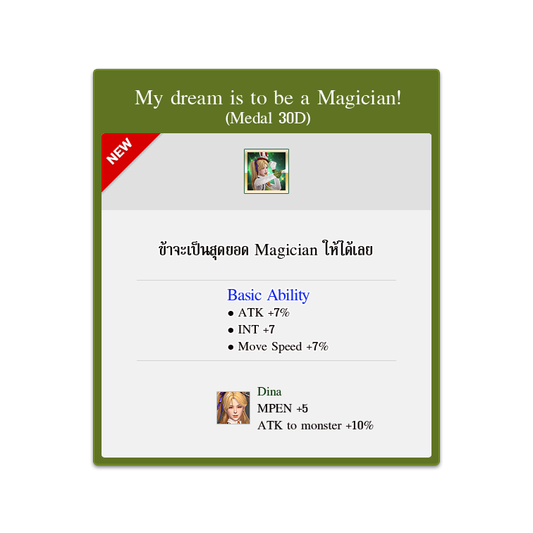 | 7 | My dream is to be a magician! (Medal) (30 days) | 3 |