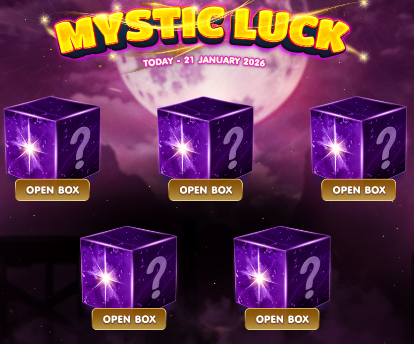 🤩กล่องสุ่มลึกลับกลับมาแล้ว! Mytic Luck ร่วมสนุกกับกิจกรรมเปิดกล่องสุ่มลึกลับ เติมเงินขั้นต่ำ 100 บาทก็รับสิทธิ์เปิดกล่องสุ่มลึกลับไปลุ้นไอเทมกันได้เลย พร้อมกันแล้วหรือยัง!?
